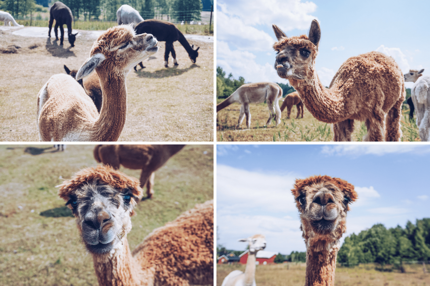 From top left, clockwise: the haughty, the cheeky, the innocent, and the curious alpacas.