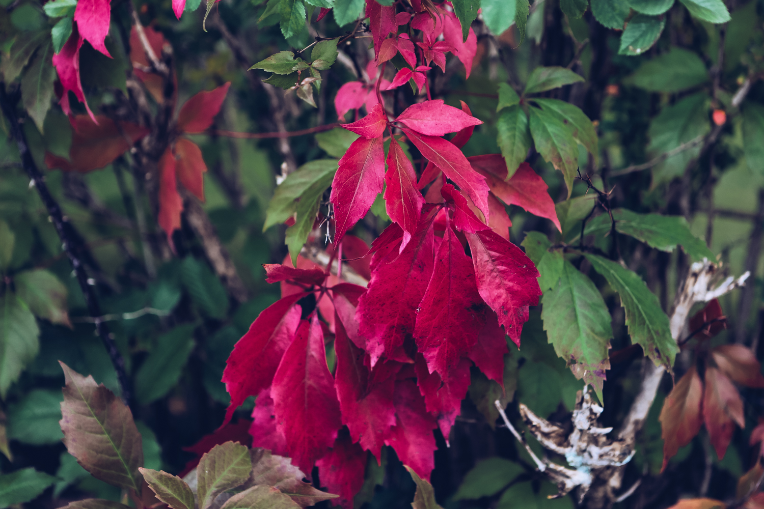 But we still get blue skies every now and again. The other day, I went for a run and noticed that the fall colors were starting to creep in. The next day, I dragged H and went out for a walk around the neighborhood, taking photos here and there as we strolled aimlessly.