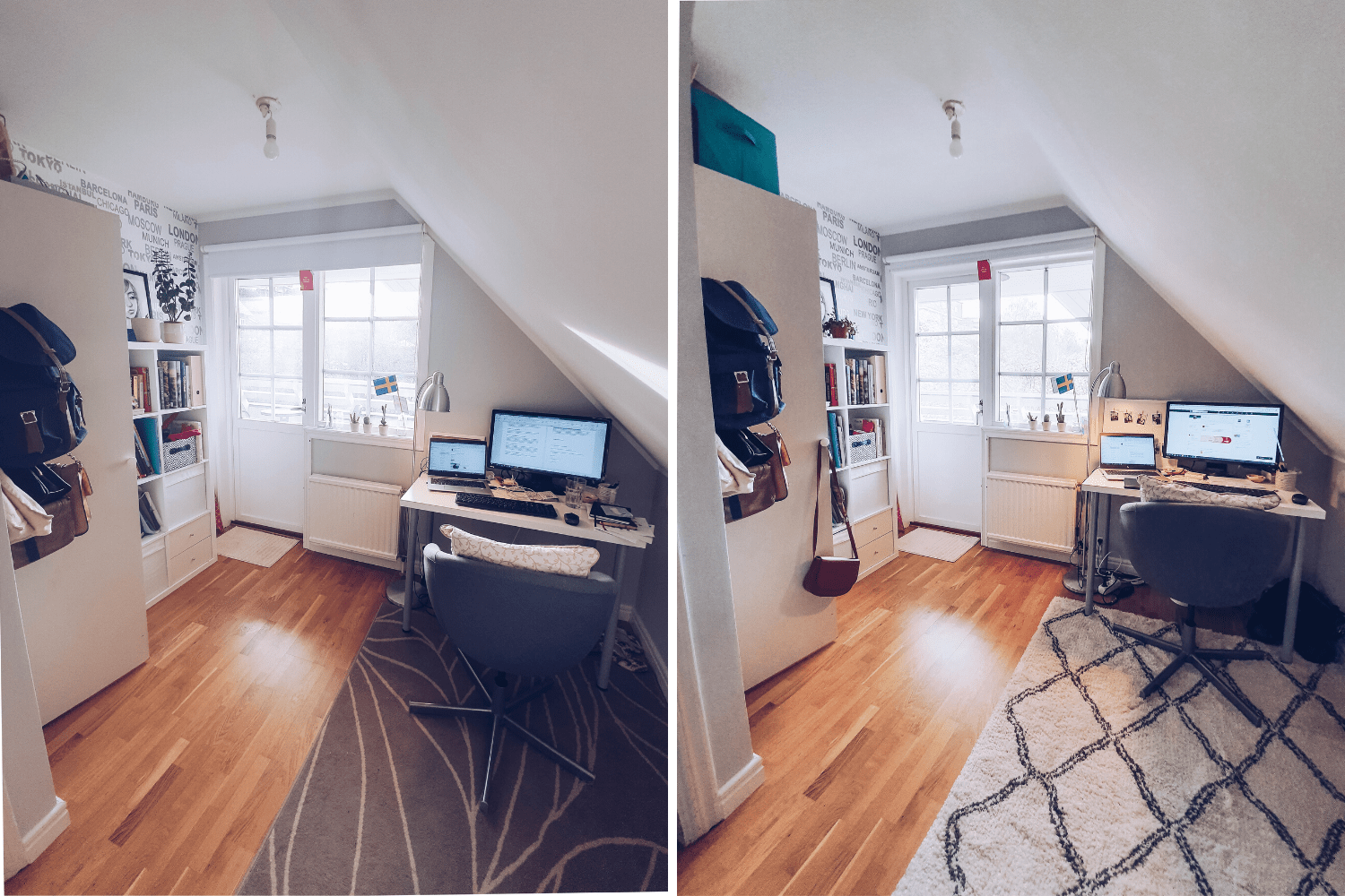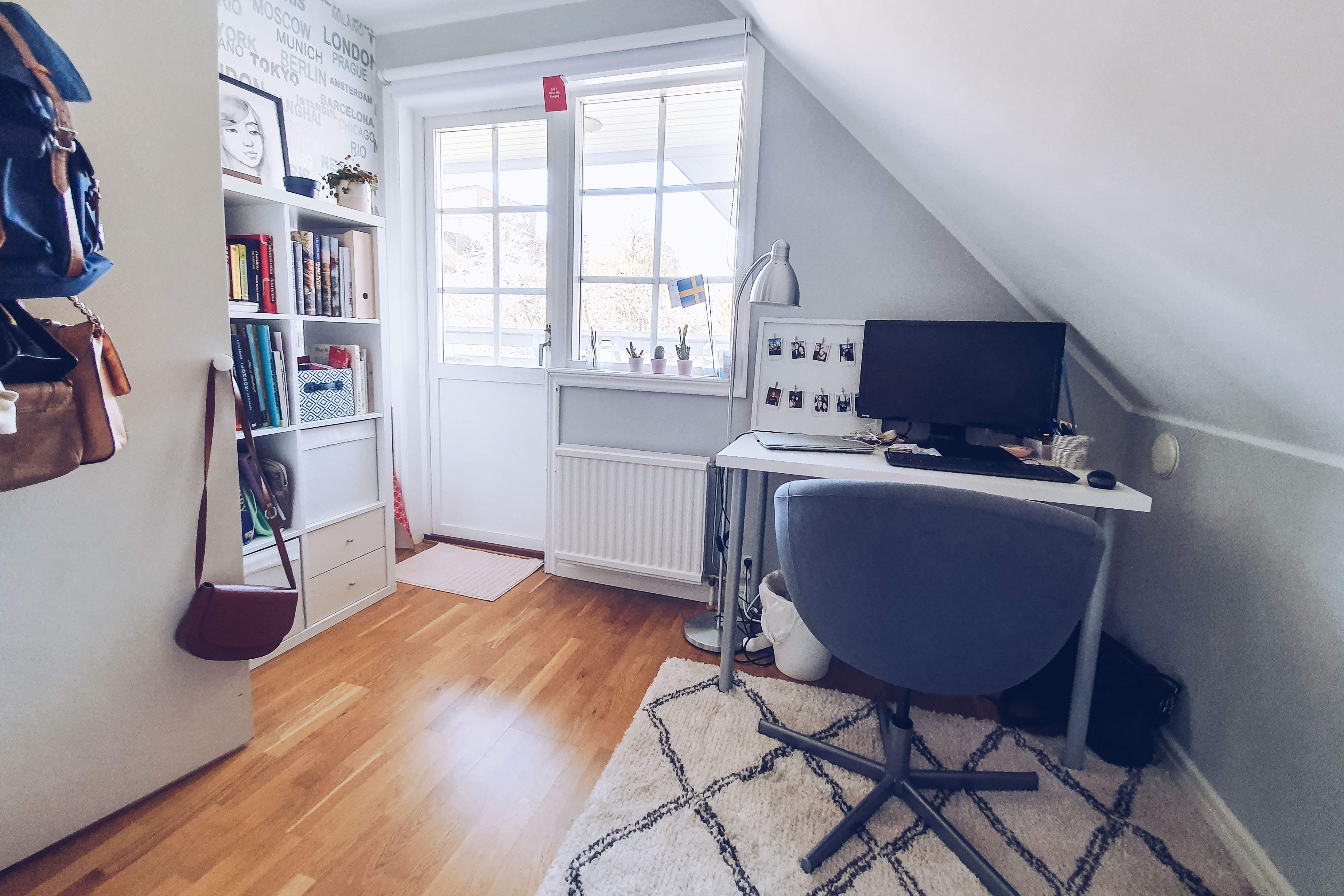 You might have seen photos of my study before (lovingly called ‘the lair’, as this is where I cook up the evil plans to take over the world). None of the furniture in this room was new — all was bought secondhand, including the old brown rug (I think I paid 100 SEK or around €10 for that). I’d been pretty happy with how it looked (considering I spent very little to decorate it), but I always knew the rug would be the first to go when I had the budget to ‘upgrade’ this room.